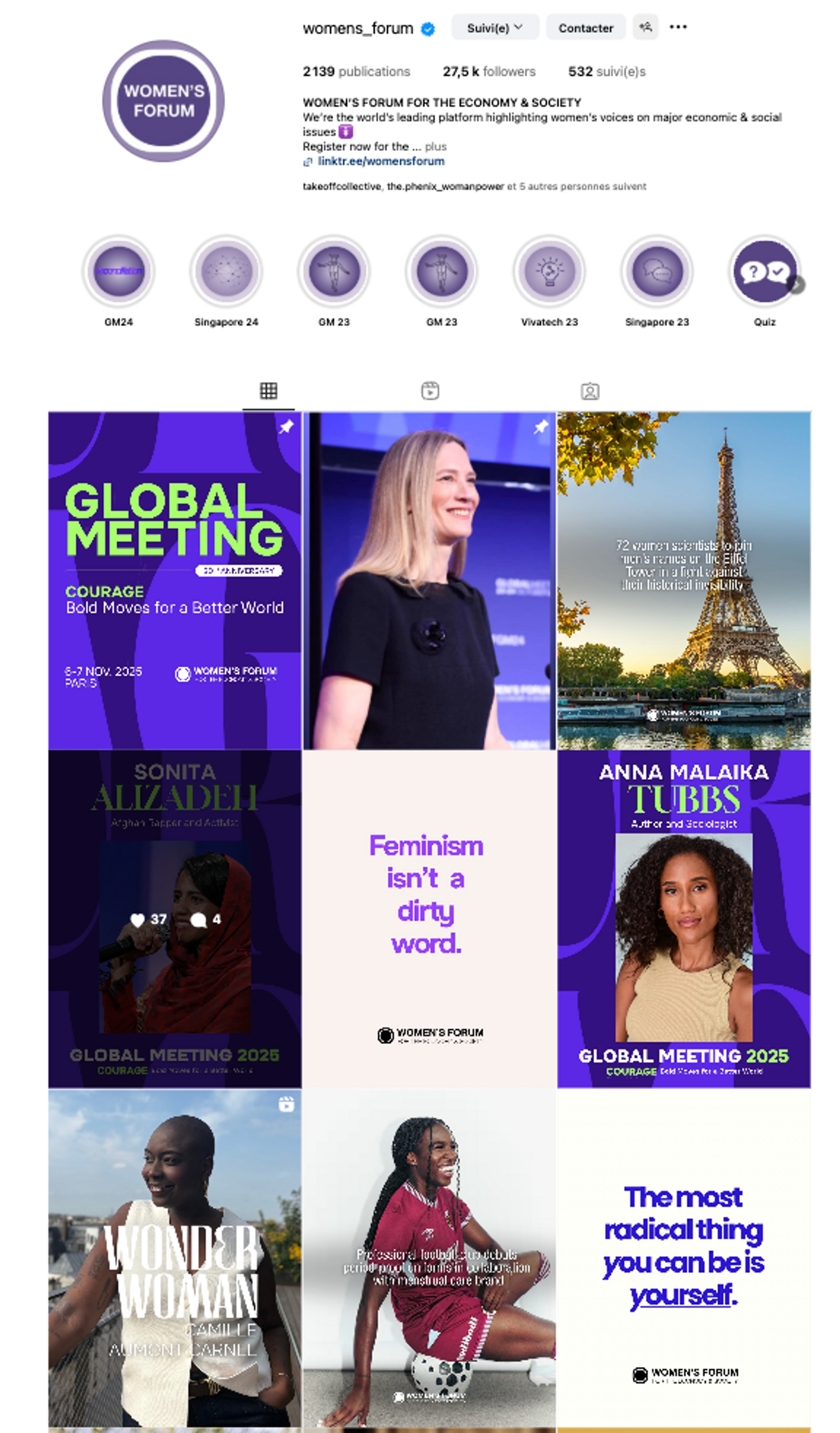 Contexte Le Women’s Forum est un mouvement international de référence, dédié au leadership et à l’impact au féminin. Dans une logique de transformation digitale, l’organisation souhaitait repenser sa stratégie de contenus pour renforcer sa visibilité et son influence.